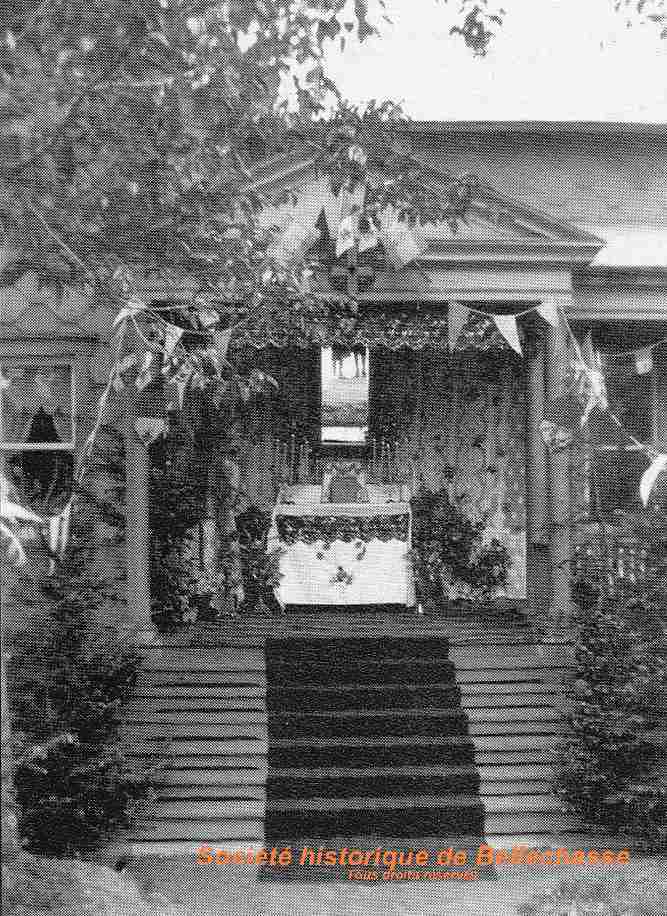 Reposoir chez Wilfrid Métivier de Buckland vers 1935 lors de la Fête-Dieu. Fonds Famille Métivier (P046,S01,SS01), Archives Bellechasse.