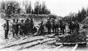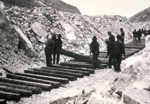 Les rails étaient transportés par le chemin de fer au fur et à mesure de la progression des travaux. Pour mettre en place les sections de rail d'une longueur habituelle de 39 pieds, il fallait enfoncer les gros crampons et serrer les boulons qui les retenaient ensemble avec l'aide d'éclisses métalliques. Il ne fallait pas oublier le jeu de dilatation entre les longueurs de rail, à l'origine du son de roulement particulier au chemin de fer.