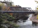 Une voie ferrée comporte de nombreux ponts et ponceaux permettant de traverser les cours d'eau. Ce pont du chemin de fer du Québec Central remplace celui qui fut emporté par les eaux de la rivière Etchemin le 17 mai 1900, à l'occasion d'une débâcle. Les anciennes culées demeurent visibles.