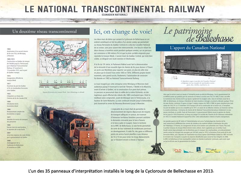 La Société huistorique de Bellechasse a élaboré plusieurs panneaux d'interprétation historique dont les composantes originales sont conservées au Centre d'archives de Bellechasse : Cœur des villages du nord de Bellechasse, Cycloroute de Bellechasse, circuit patrimonial NDPS, etc.