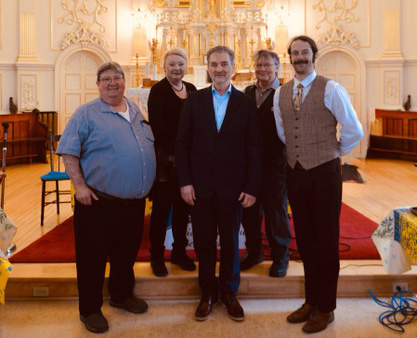Paul Drouin, trésorier, Sylvie Corriveau, vice-présidente, Yves Turgeon, président, Normand Blais, administrateur et Philippe Arseneau, directeur du Centre d'archives de Bellechasse, archiviste-historien. Crédit photo : Paul St-Arnaud.